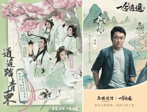 在游戏之外,,《一念逍遥》一直致力于打造国风修仙原创IP,,以音乐、、、漫画,,,小说等衍生内容去延展丰富游戏内容。。上线以来,,整整做了十首歌,,小说应该也是喜马拉雅平台今年游戏品类小说收听量Top1的作品;而在营销的内容传播上,,《一念逍遥》也一直秉承比较国风的基调,,传递诗词、、文化内涵,,,,如如清明节定制汉服合作,,,,传递中国传统的清明踏青、、、清明诗会文化。。
